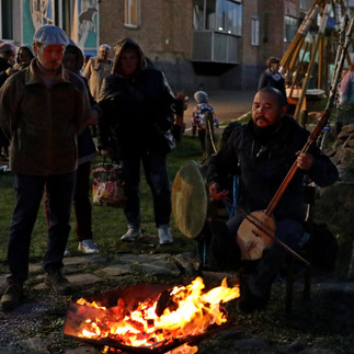 Гости собрались в ряд для начала ритуала Очищения – нужно пройти между огненными чашами и встать в круг, замкнуть его возле жертвенного очага. Музыка замолкает, каждый погружается в свои мысли, в себя. Слышен только голос шамана и живое исполнение хакасского кайчи (Албычаков Вячеслав). Обряд кормления огня – традиция, которая несет в себе много смысла, наполненности и красок. Ведь каждый участник музейной ночи знает, с каким желанием и целью он участвует в обряде. Ладони открыты небу, голова чиста от мыслей, внутри только голос души и тебя накрывает необъятное чувство благости к этому миру. Духов угостили щедро, от всей души, даже потчевали виноградом. А мы - гости этого действа, смогли загадать свои желания, подвязав ленты на священную березу Пай-Казын.