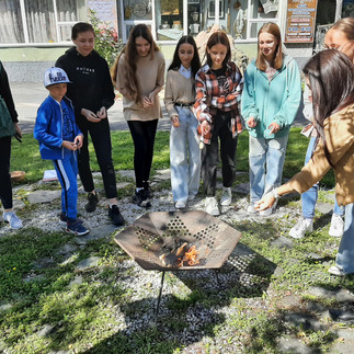 В образе шориянки экскурсовод провел ребят по главным скульптурам, олицетворяющим духов воды, гор, огня, не обошли стороной шорскую свадебную юрту и священную березу. Рассказ о культе стихийных сил и объектов природы, существовавший у шорцев в прошлом и возрождающийся в настоящее время, произвел на школьников впечатление. Многие открыли для себя новое, задавали вопросы, запоминали названия и шорские термины и слова. Кульминацией экскурсии стало проведение «обряда» Шачыг (кропление, поклонение огню). Ребята вместе с ведущей смогли поблагодарить всё живое и «покормить» огонь булочками, сами непосредственно приняв участие в обряде. После этого, по всем канонам, были повязаны ленты –чаламы на березу и конечно только с добрыми и светлыми помыслами у школьников завершилась экскурсия. Не обошлось и без проверки знаний и легкой викторины в конце, за неё участники получили сладкие подарки.